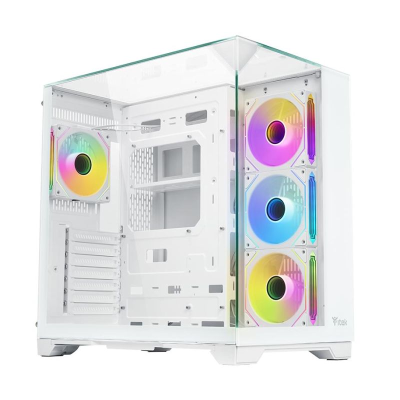 Case Itek DARK CAVE PANO - Gaming Tower, ATX, 4x12cm ARGB fan, 2xUSB3, Type-C, Temp Glass Top, Side & Front Panel, White Edition
