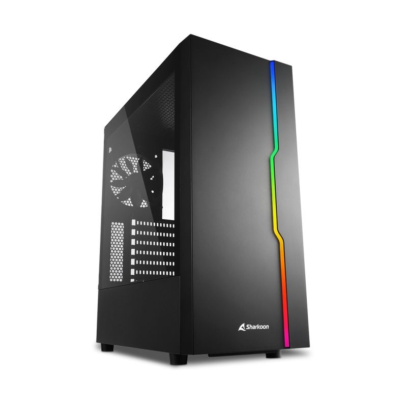 Case Sharkoon Rgb Slider - Atx, Micro Atx - Alimentatore NON presente - 2 porte USB frontali, audio in/out - 1x Ventola 120mm. - Mid Tower ATX - RGB Color - Nero