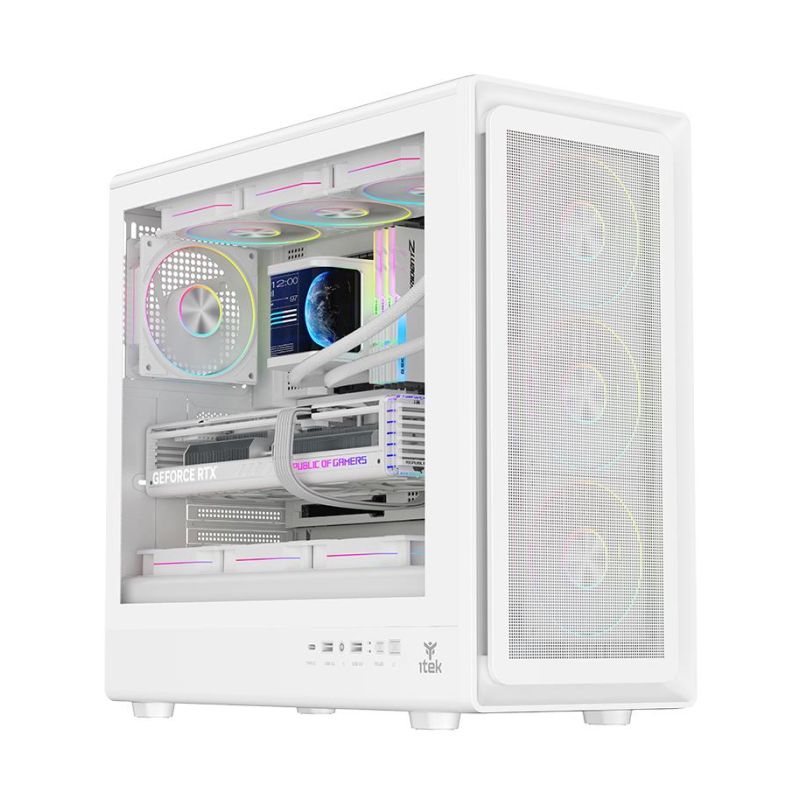 Case Itek MESHCORE 36W - Gaming Tower, ATX, 4x14cm ARGB fan, 2xUSB3, Type-C, Side Panel Temp Glass - Bianco White Edition