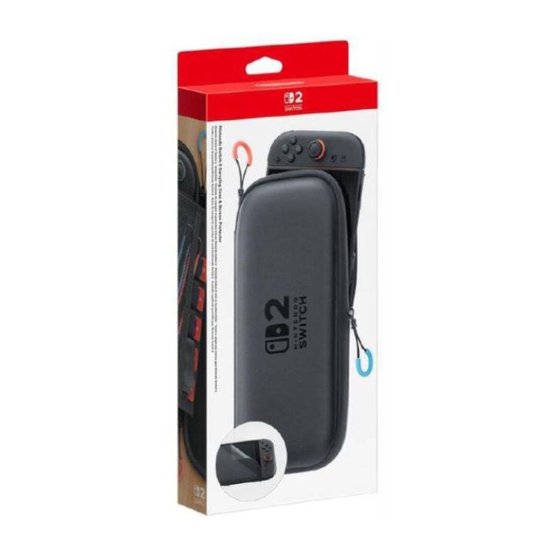 Proteggi la tua console Nintendo Switch 2 con questa elegante e robusta custodia, che include anche una pellicola protettiva e un panno per la pulizia. Può ospitare fino a sei schede di gioco e due laccetti per Joy-Con 2.